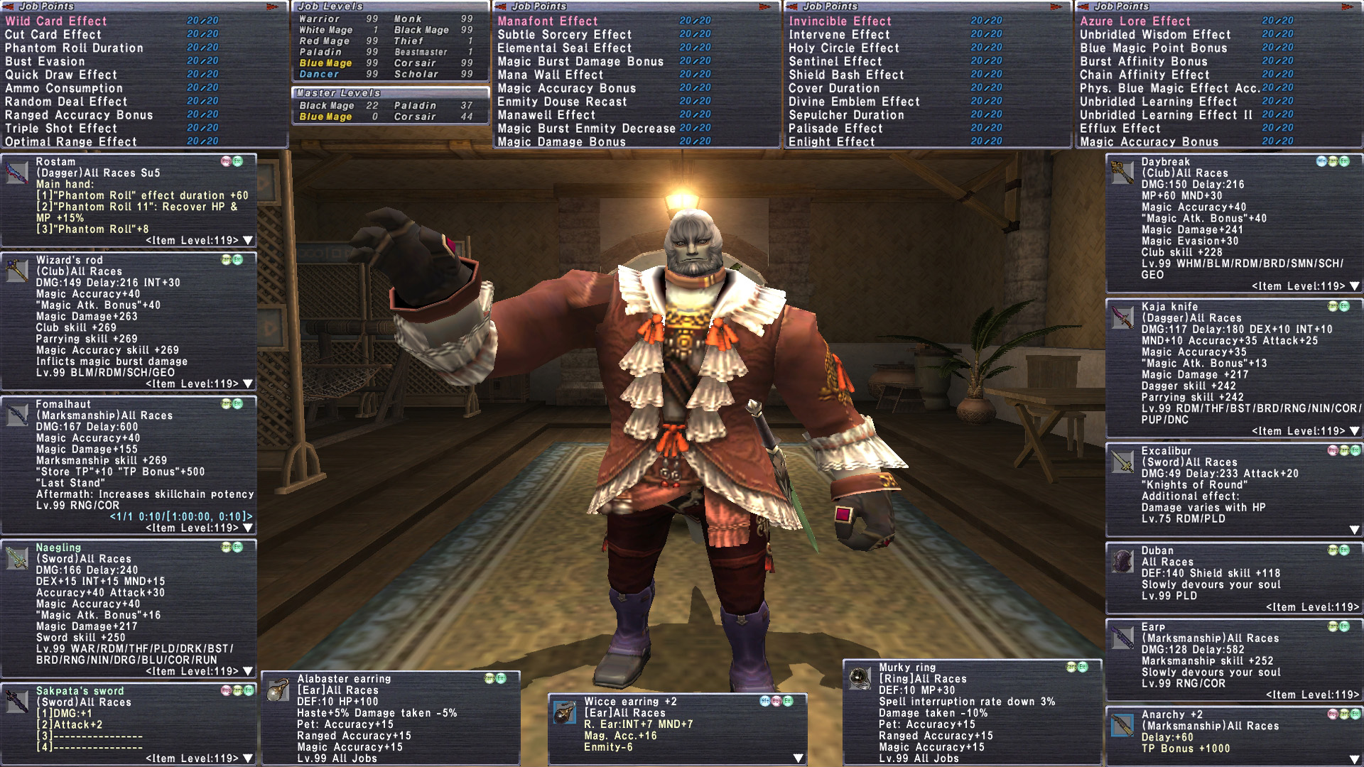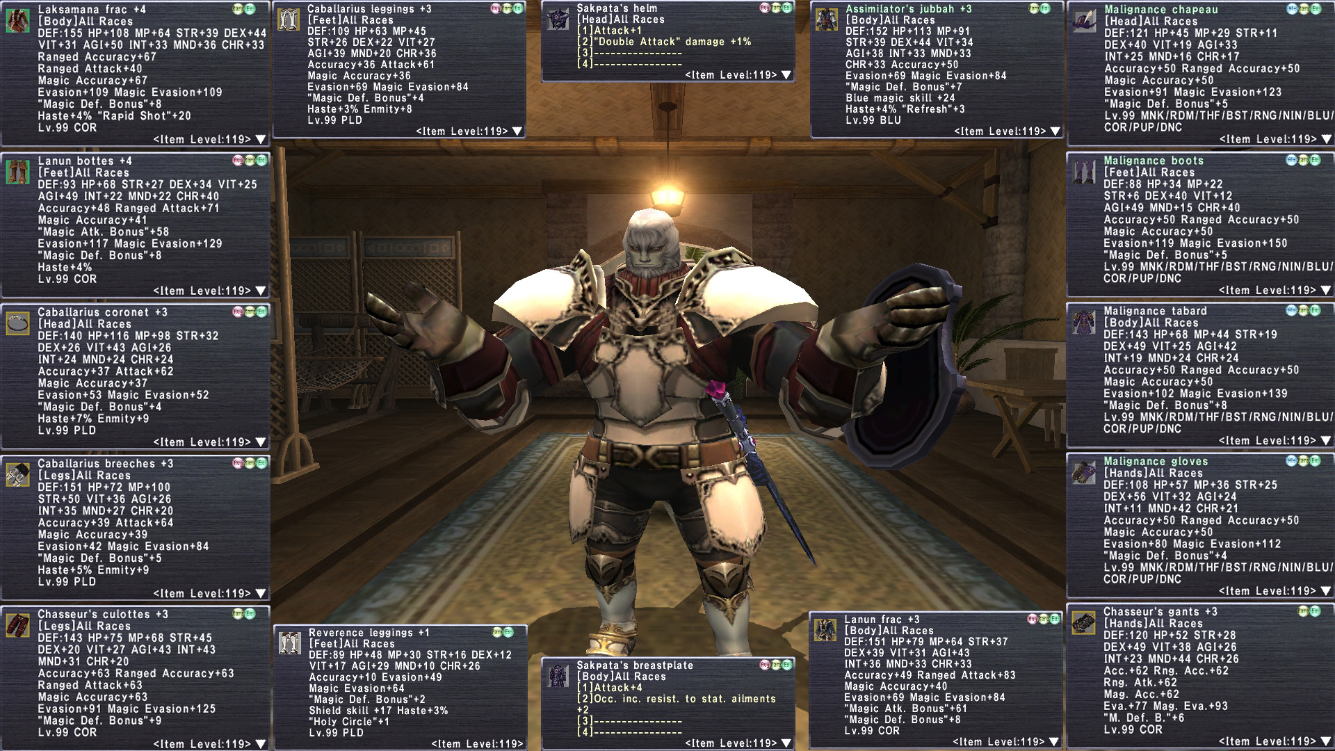 tldr Nicely rounded Galka with a nice Rostam Corsair Reforged +3/+4 with Naeg and TP Bonus Gun. Full Malignance. PLD BLU and BLM all capable and built as well. JSE Backs built for COR/PLD/BLM Missions done including tVR. 3/4 Null. Unity+1