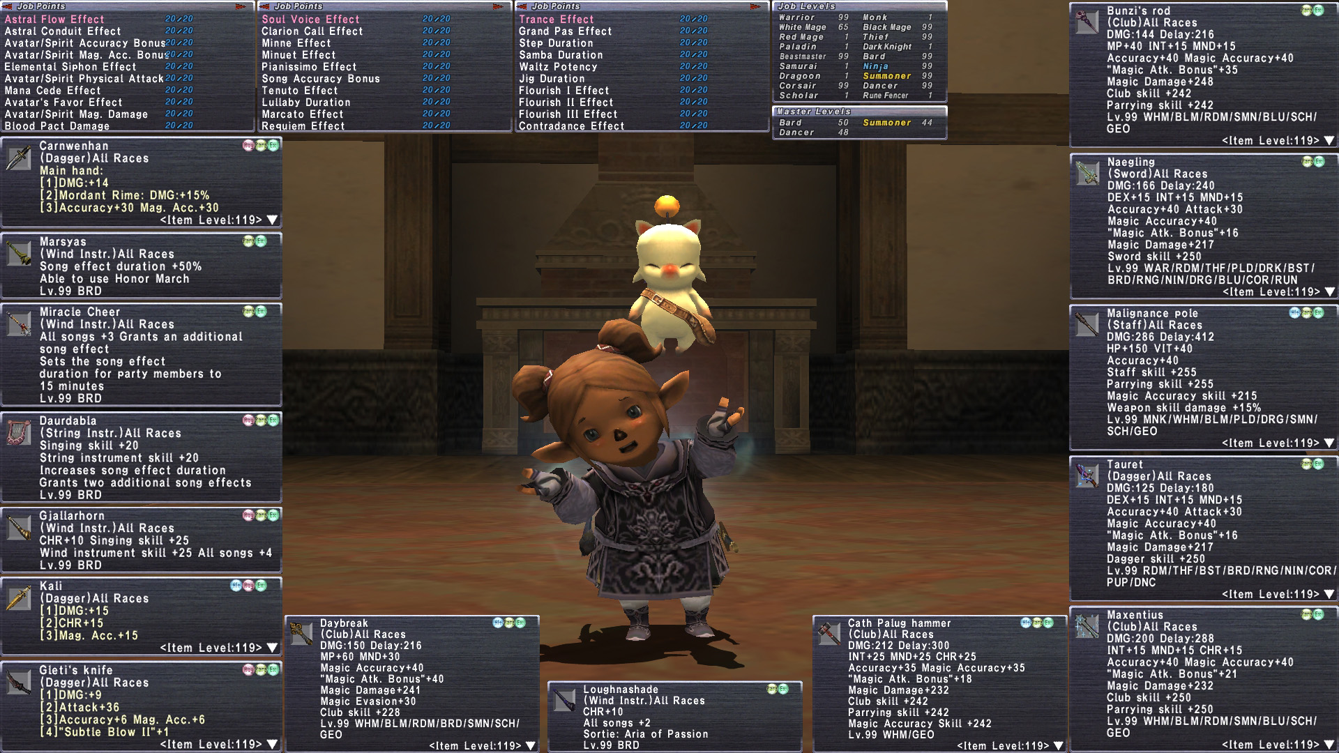 tldr STACKED ML50 Rema bard. Rank15 Carn. and STage 3 prime horn(Aria in Sortie) Limbus+4 gear for BRD/DNC/SMN. Very well geared on all 3 jobs. 6/6 legend with plasm for Idris/Epeo. Almost all Ody opened to R25 or 30. over 300k mog segments on hand. Lots of omen R/EX. 5x C. Palug. 7x Malignance. 3x Null. 3x Crep. 677k mog segments. So just 1.8m~ from Stage 4 Prime horn. gearswaps available. RoV and TVR complete