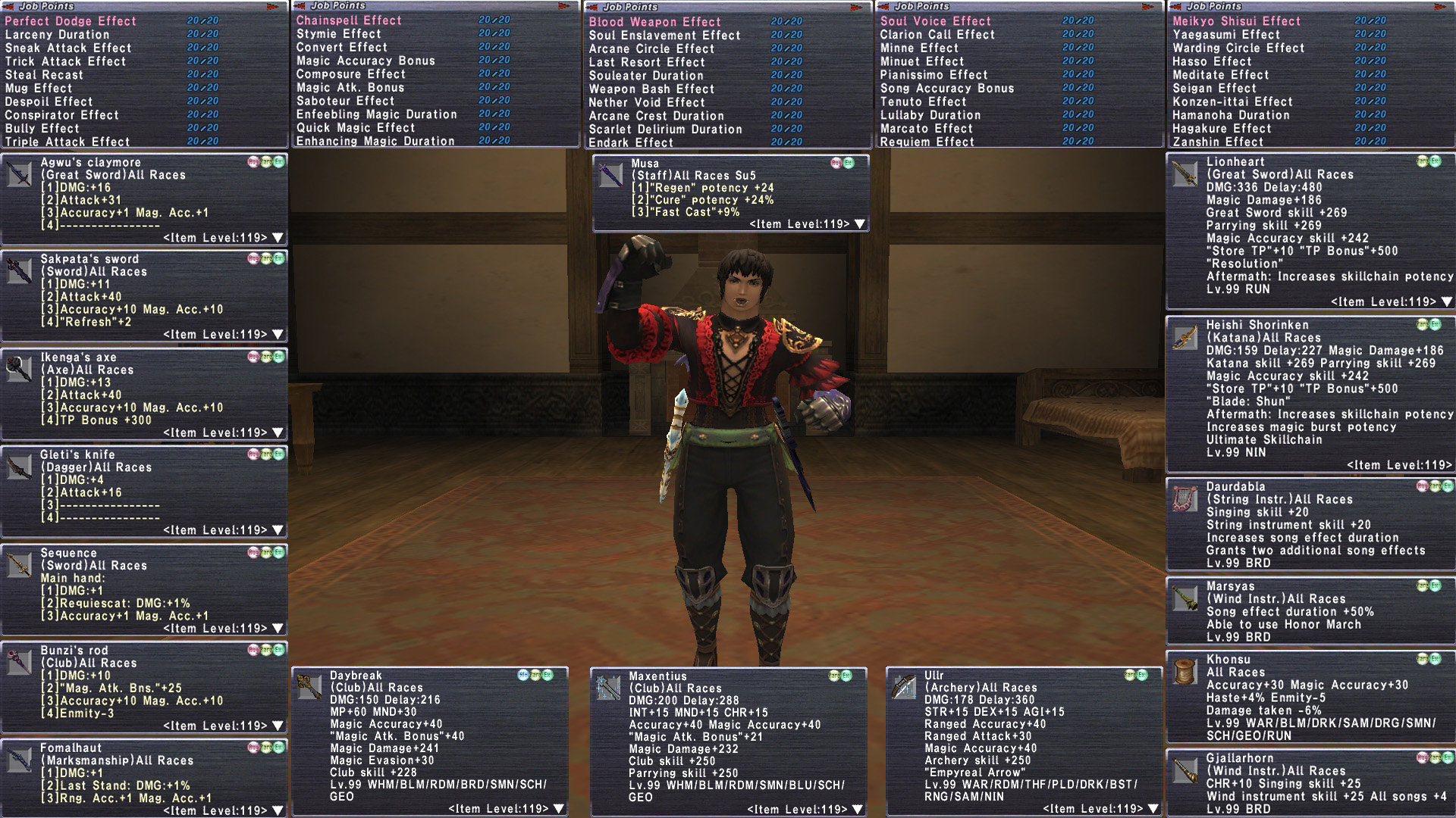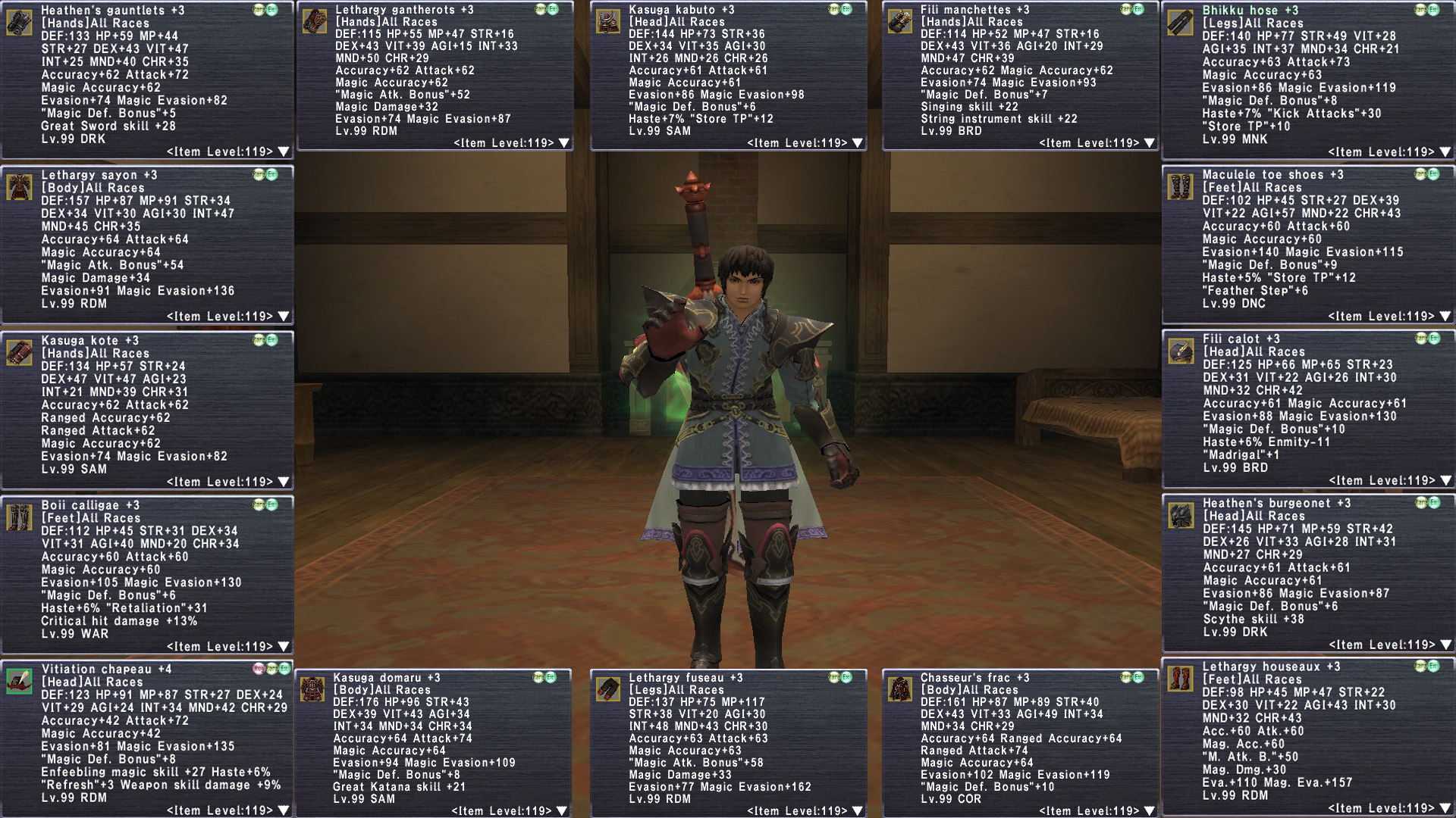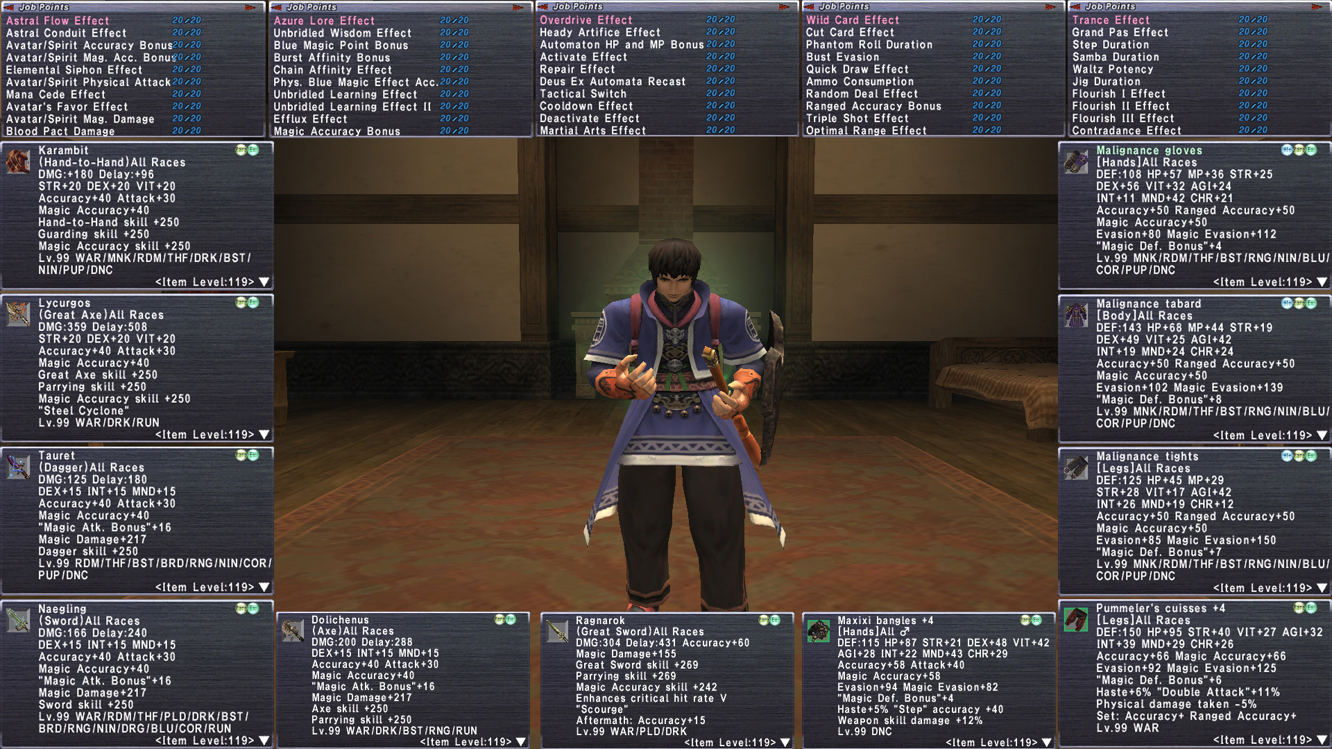 tldr& Insane beast 17 year old account, with Stage 5 Prime Foenaria, Stage 4 Prime Mpu Gandring. 21 REMA including 6/6 Legend, Idris/Epeo. Tizona BLU, Cala/Apoc/Ragnarok Dark Knight. Chango/Savage WAR. Doji Samaurai. Nirvana Summoner. REMA Bard. Ody R30 opened up on many, Nyame @25. 13 su5+2 necks. 8x jobs @ ml50, and another 5 over ML40 Musa/Rostam/Crocea. JSE +2 earrings. Massive reforged +3. Omen RX inlcuding 8x Regal. Massive Ambu JSE backs. Domain Invasion. Unity+1 R15. 4x C. Palug. TP Bonus gun/dagger/sword.. Full 4x Null, Full Malignance. 94 Trusts. 5.1m Gallimaufry on hand, which is enough to Stage 5 the dagger, or built any othe stage4. 375k Mog segments. Absolute versatile monster that can cover ANY spot for ANY content.