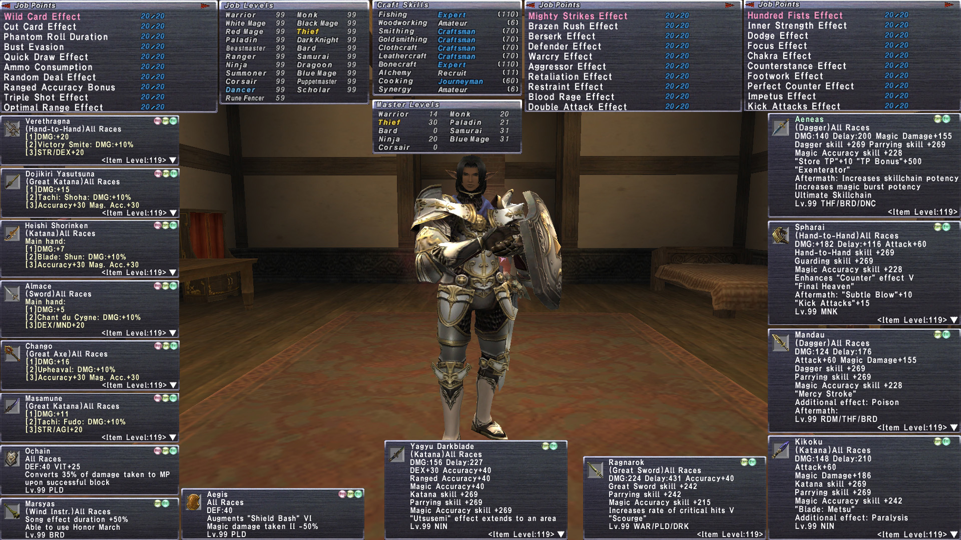 tldr Well Round Elvaan Male. Lots of Rank 15 REMA, Sortie+2. su5+2 necks. Af/Relic+3. Ambu backs Domain Invasion, unity+1 r15. Daybreak + Full Malignance. 110 crafter and fisher with Ebisu. Mastery Rank 6. Tons of base af/relic. Lots of empy upgrade items. 49 Glavoids. Thoroughly built old school account. Mastery Rank shows it. This account is on Asura (restricted server)